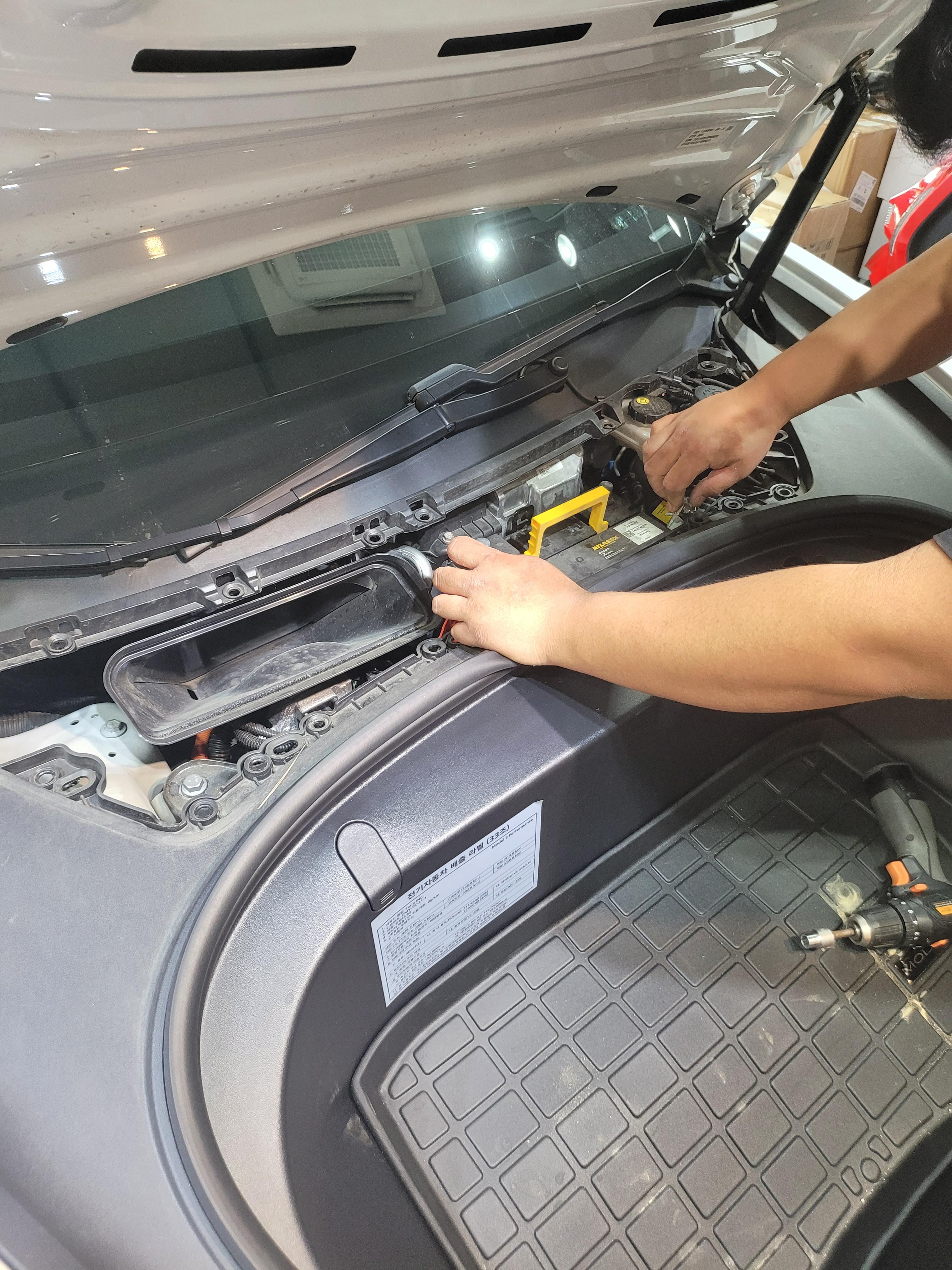 순정 상태가 아닌 사제 오토 프렁크, 오토 트렁크, 블랙박스 작업등이 되어있으며