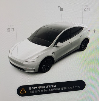 모델3와 함께한 지 2년 가까이 되던 시점에 12V 배터리 교체 알람이 발생하였다