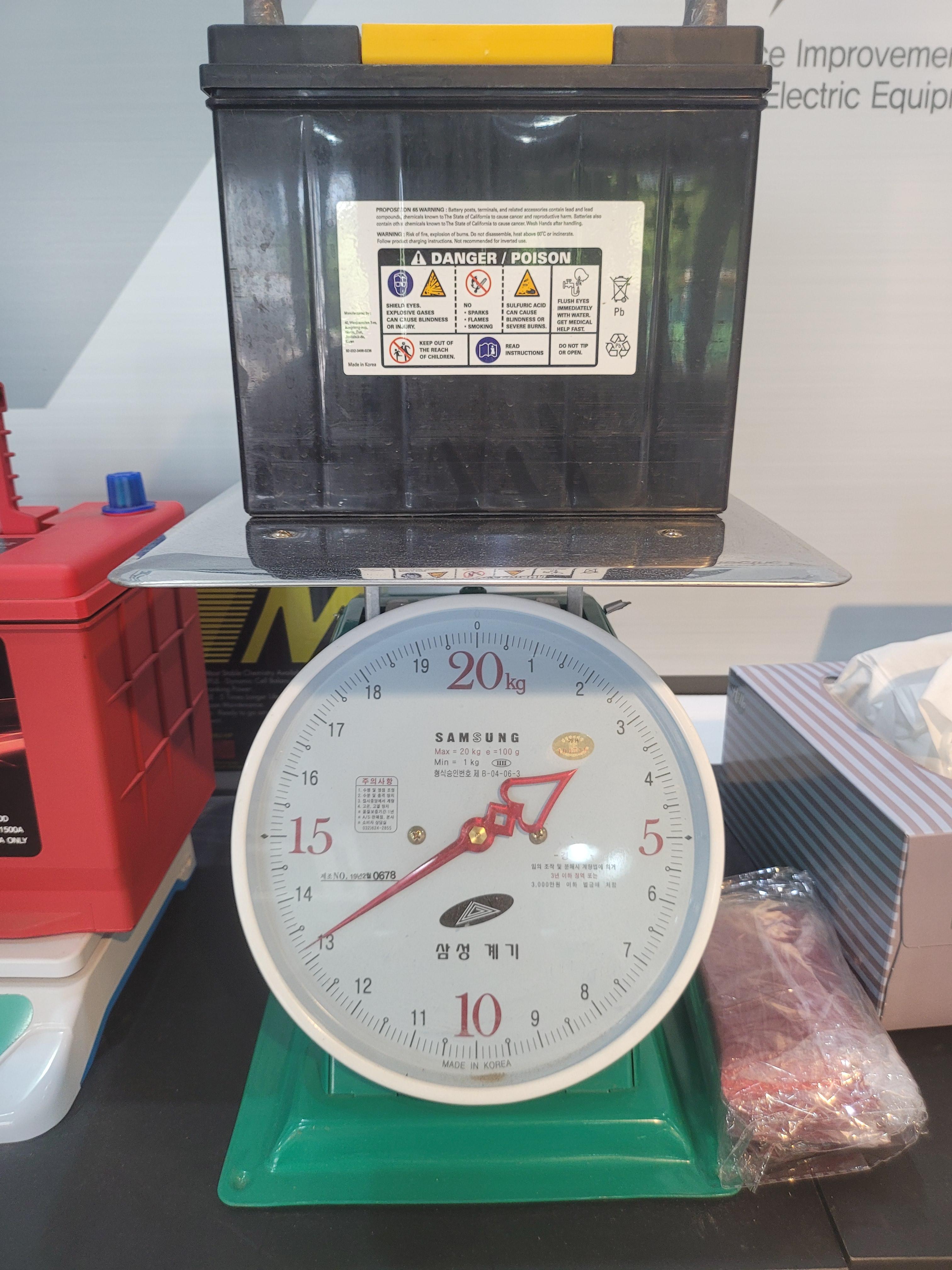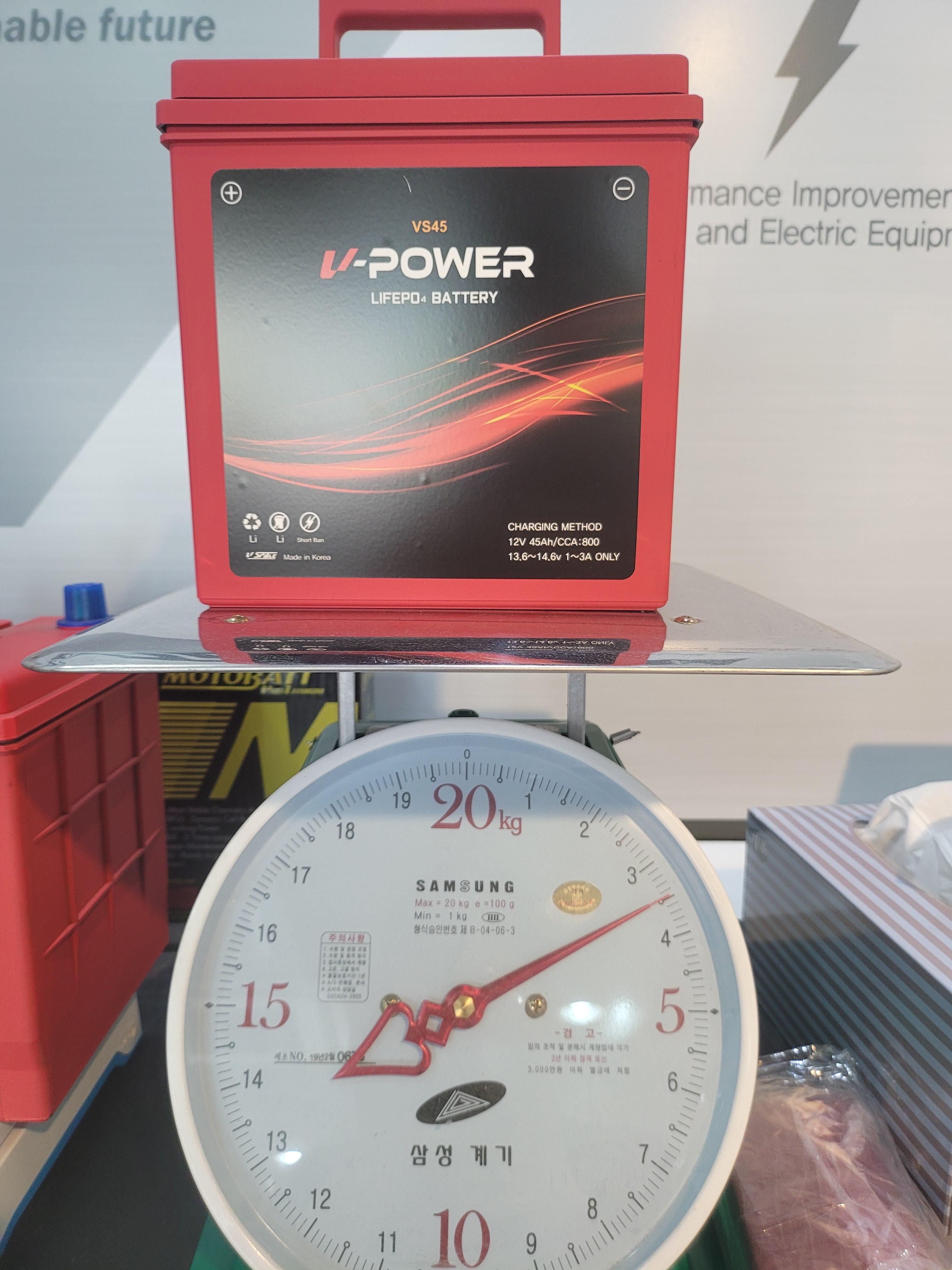 아래는 기존 AGM 납 배터리와 인산철 배터리 간의 무게 차이인데 무게 차이가 상당하다..