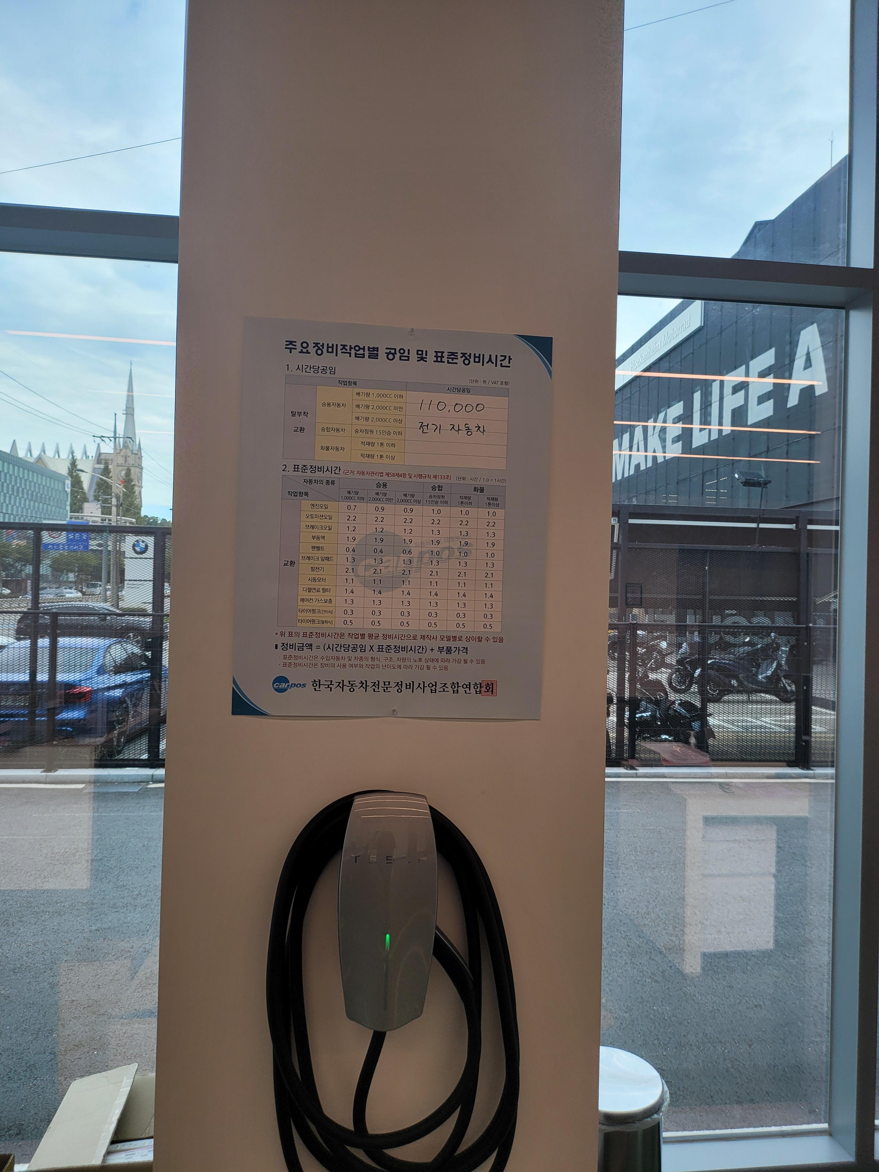 접수를 완료하고 천천히 둘러보는데 아래와 같이 작업 공임료에 대한 표를 볼 수 있었습니다.