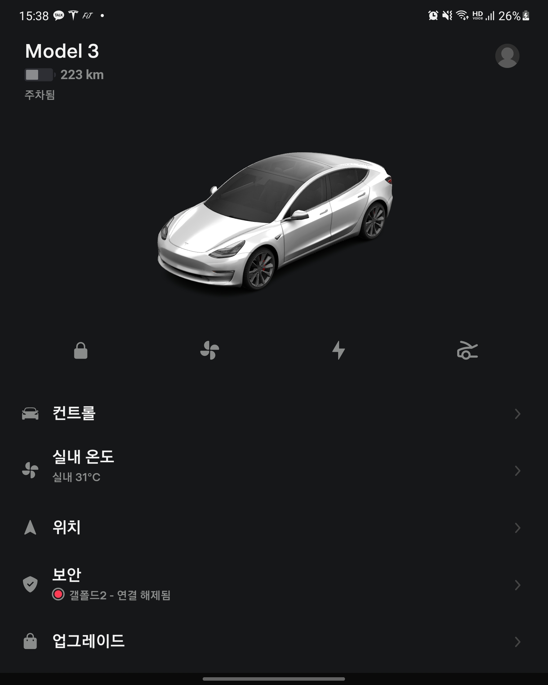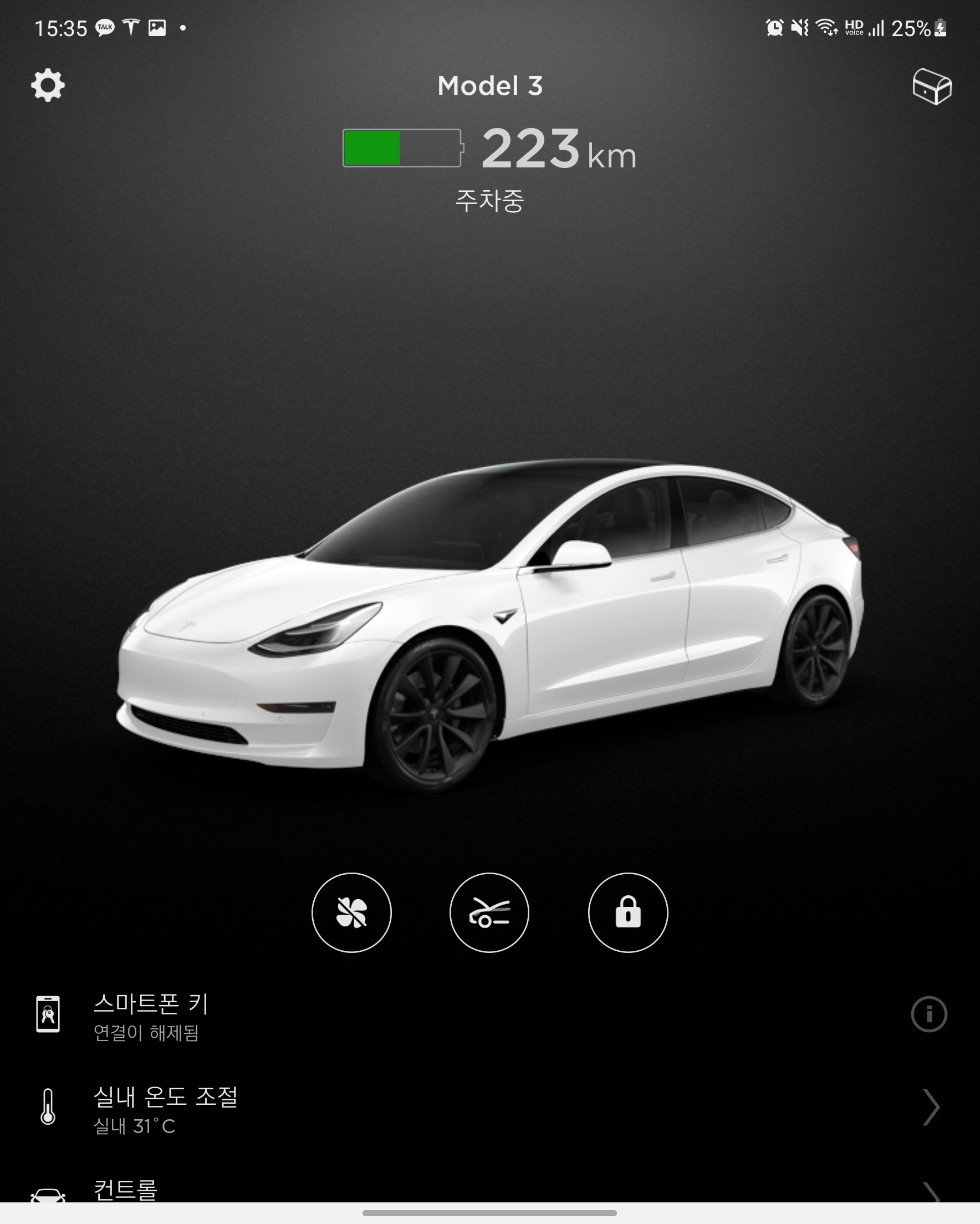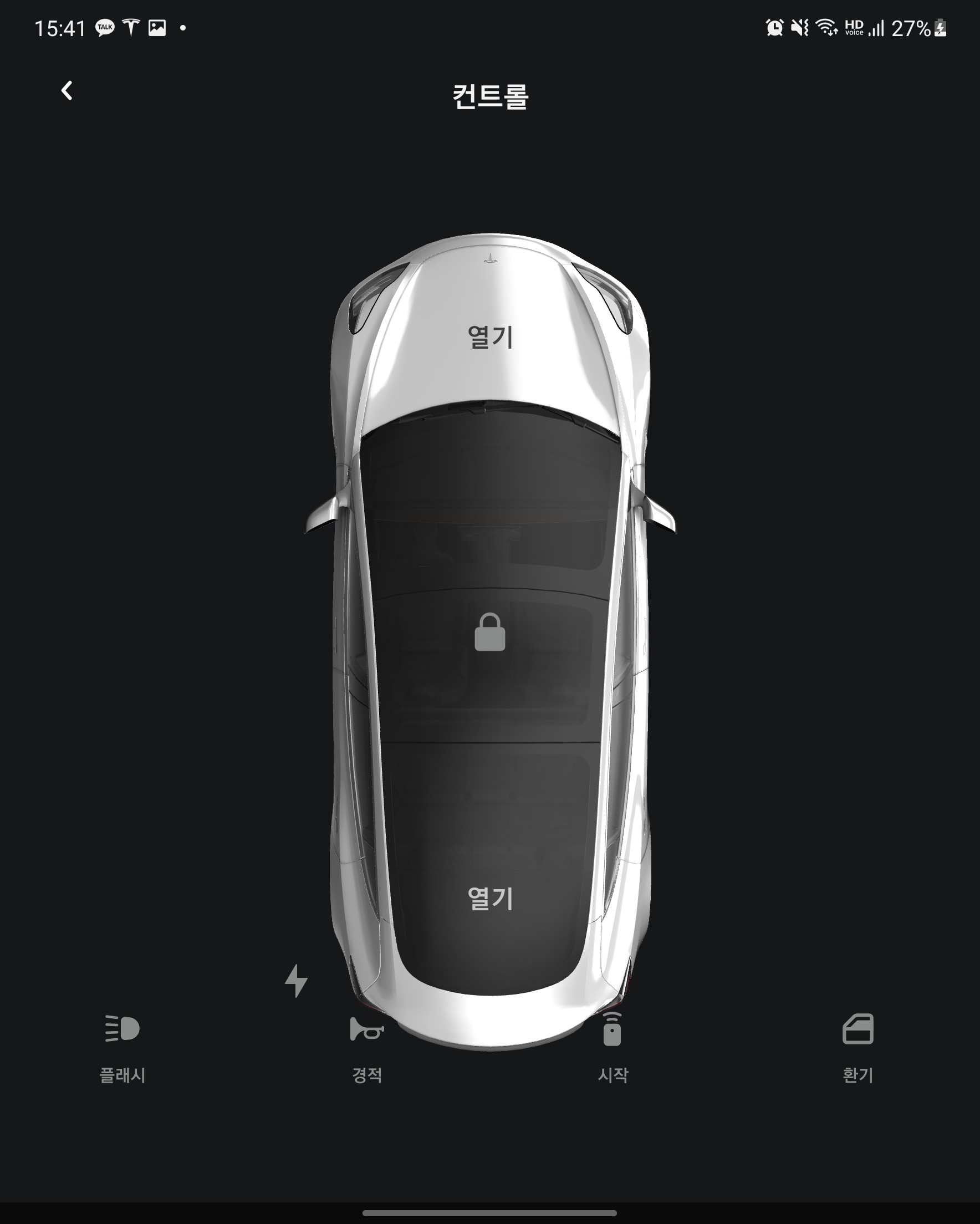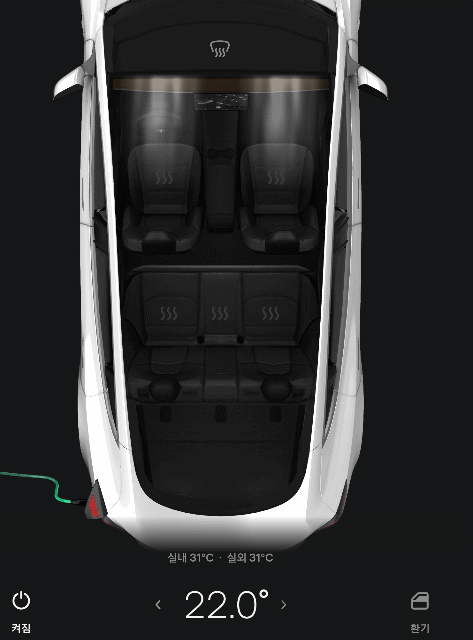 테슬라 어플의 컨트롤 화면으로 갔을 때 예전에는 직관적이기는 하였으나 밋밋한 느낌이었는데 이제 키팝을 만지듯 차량을 직접 터치하여 각 항목을 열고 닫을 수 있게 되어 바뀌었습니다.