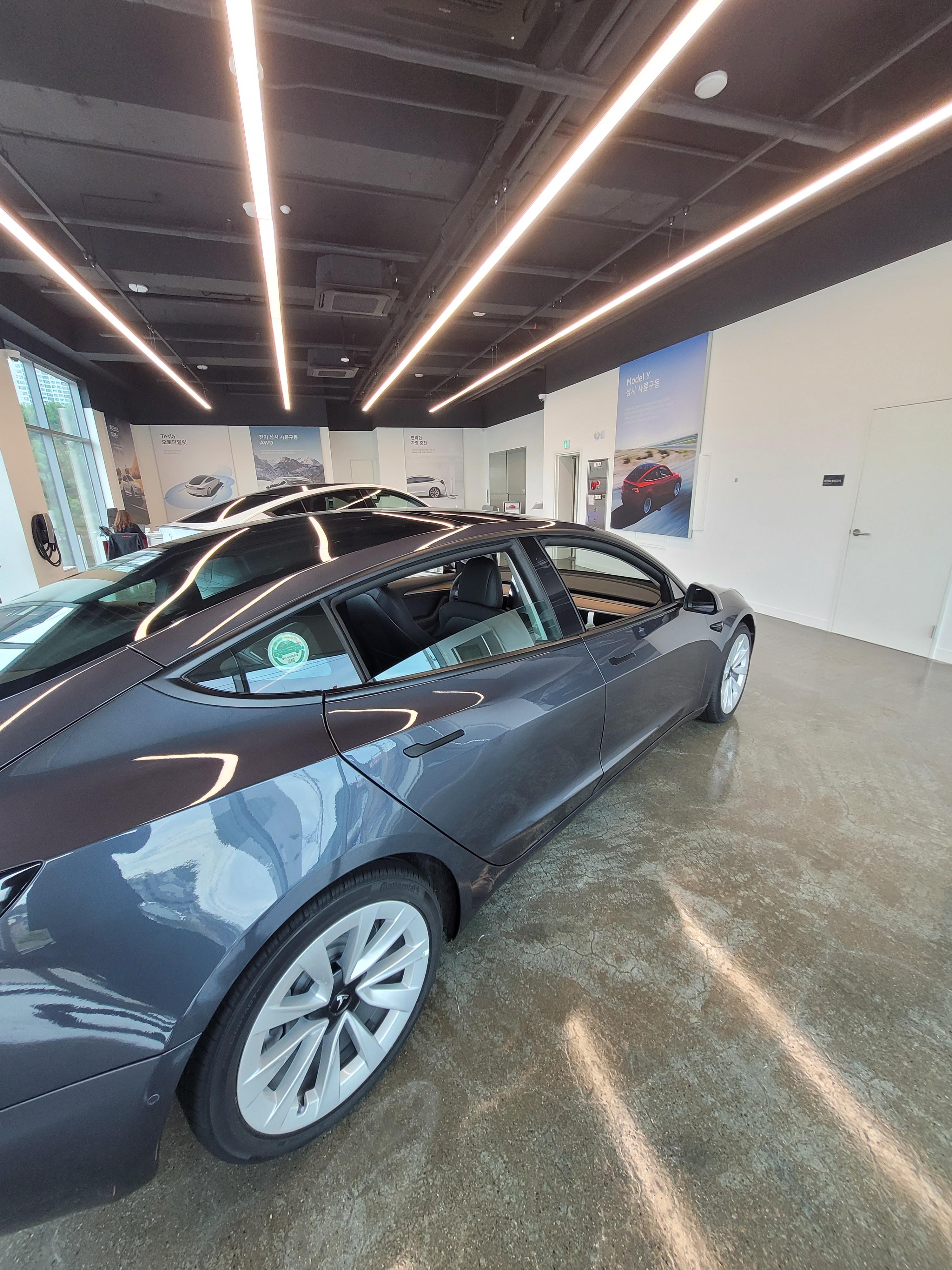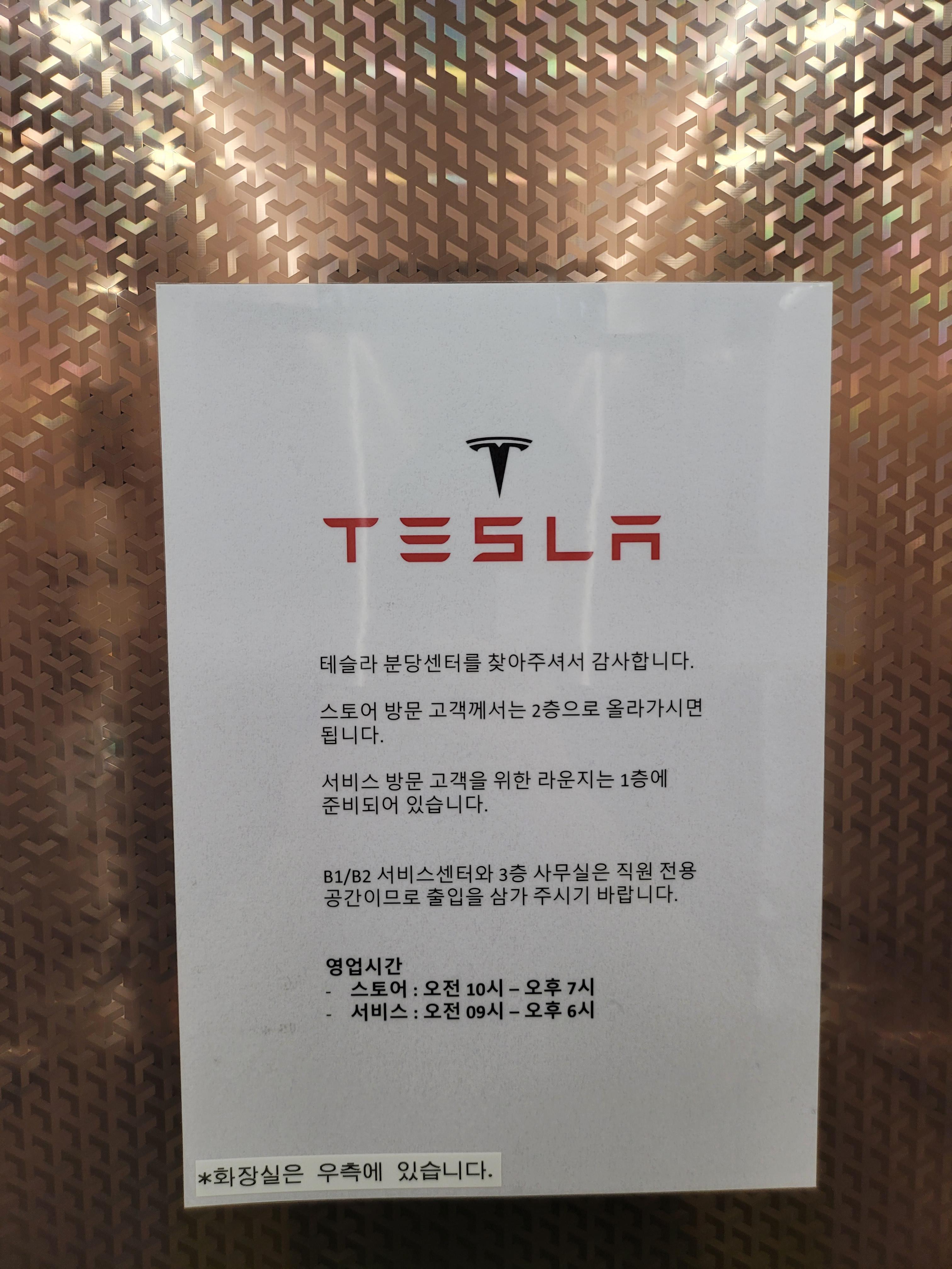 테슬라 모델3의 어퍼암 오일링 처리를 받기 위해 테슬라 분당서비스센터에 다녀오면서 2층에 위치한 테슬라 스토어에 들렀습니다.