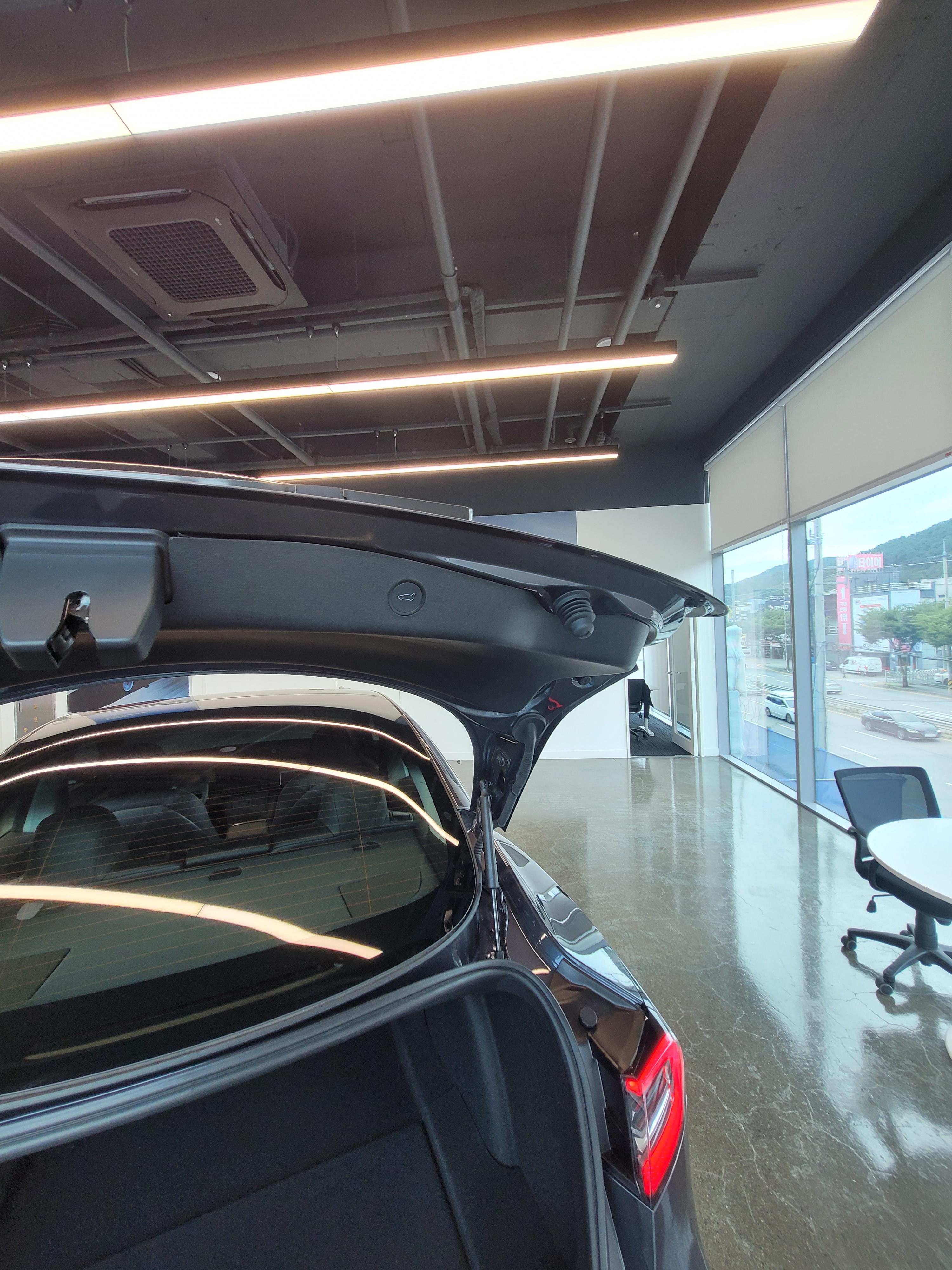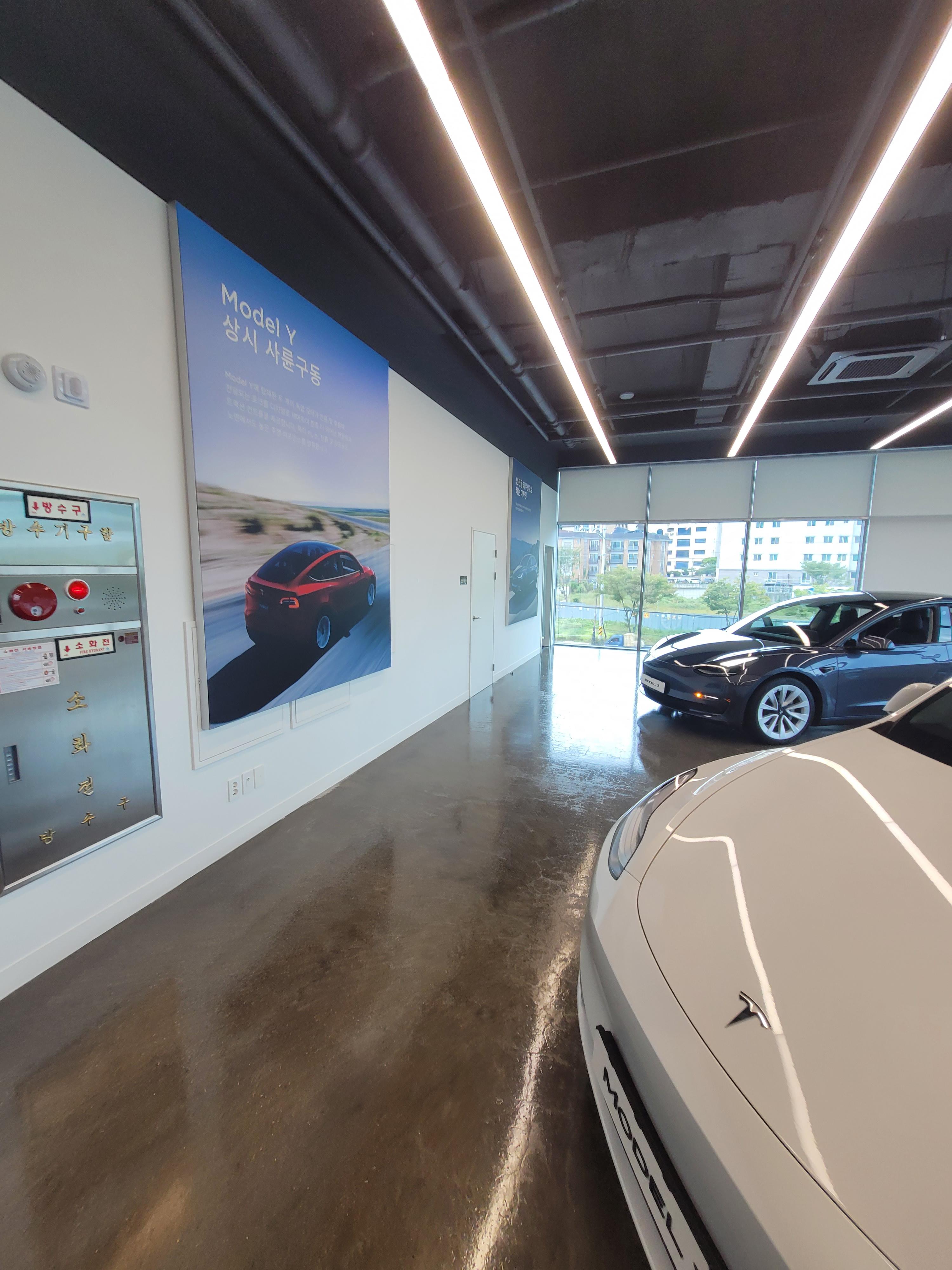모델Y 내부를 제대로 구경하고 싶었으나 판매완료 차량으로 감상할수없어 아쉬웠지만 다음에 저의 모델 3 어퍼암 교체를 받을 때는 내부 구경을 할 수 있길 바라며 아쉬운 마음을 달래고 다시 1층으로 내려왔습니다.