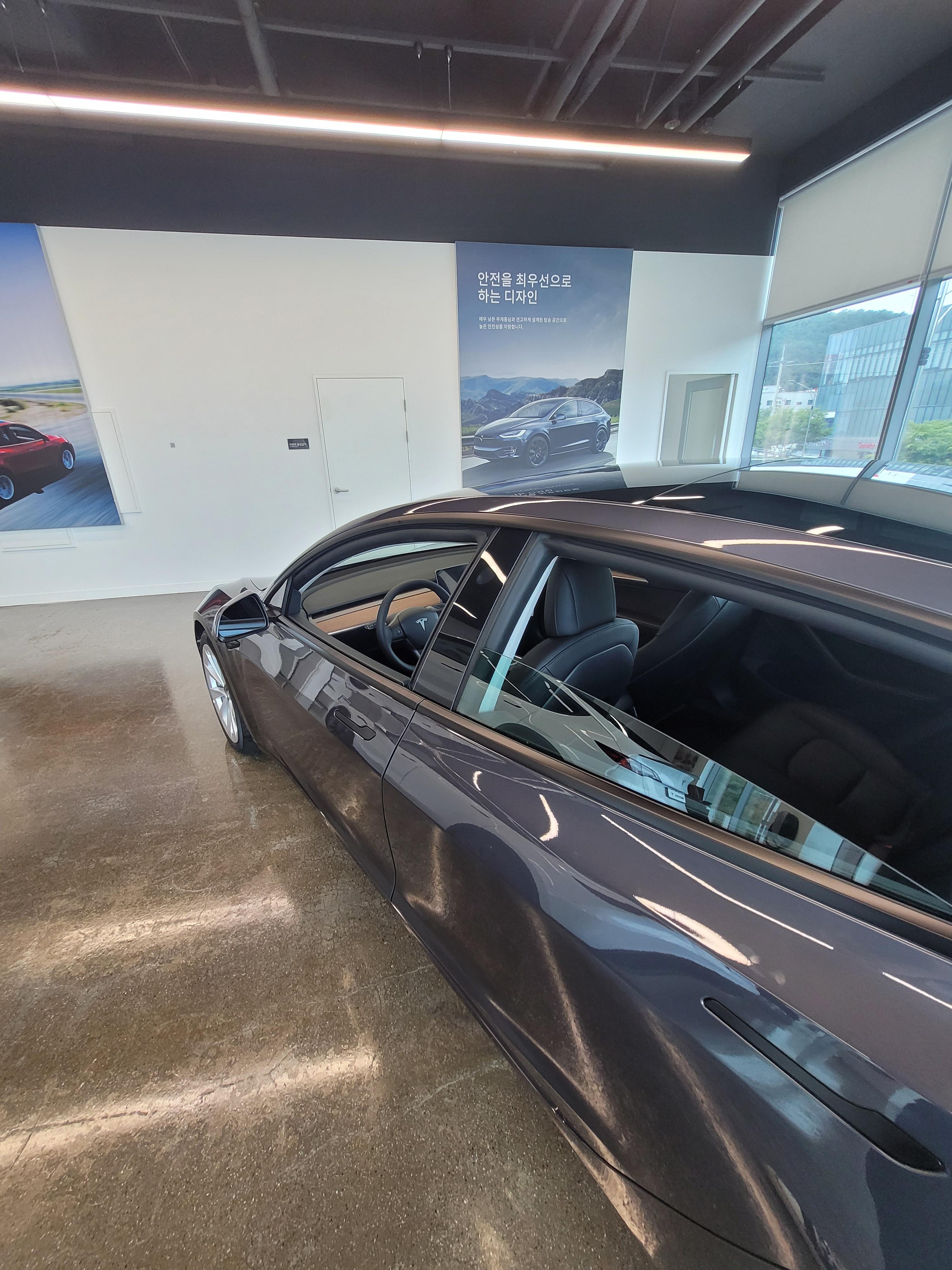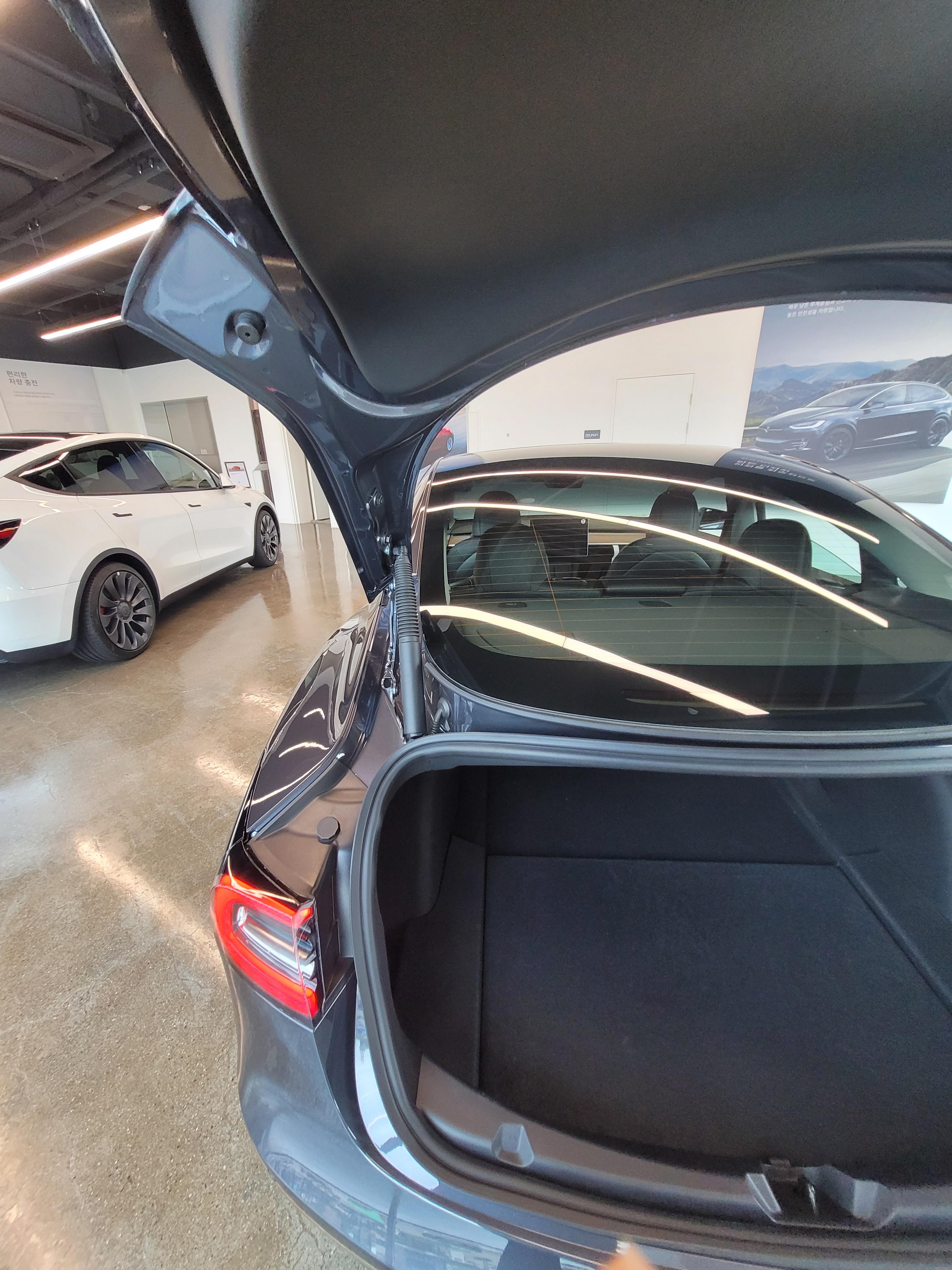 아쉽지만 외관만 둘러본 소감을 말하자면 제가 예전에 구입한 초창기 모델3 대비 외관 마감이 훌륭한 수준으로 변햇으며 모델3 보다 확실히 크다는 느낌을 받았습니다. 내부가 더욱 궁금해졌지만 외관만 구경할수밖에 없어 아쉬웠어요.