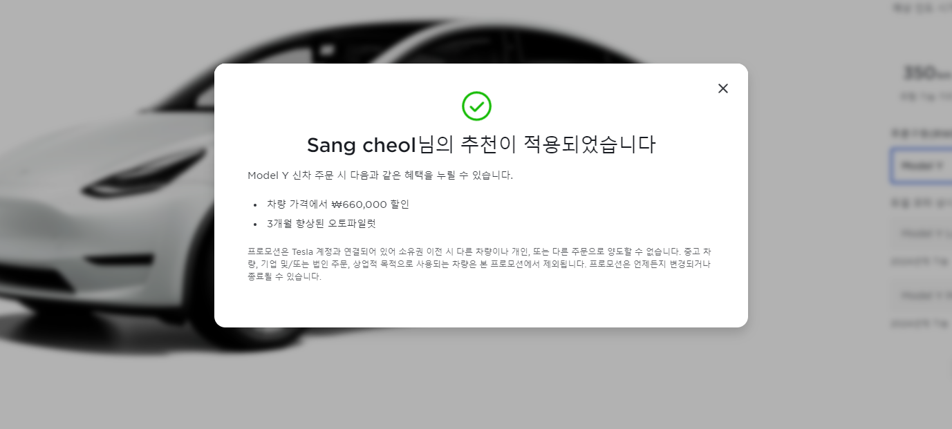 아래 링크를 통하여 테슬라 모델Y 구매시 저와 함께 리퍼럴 혜택을 보면서 테슬라 모델 Y 를 구매 하실수 있습니다