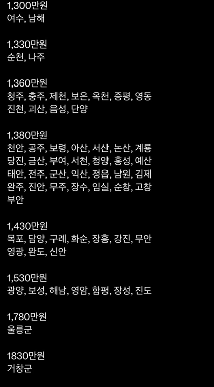 각자에 맞는 지역의 보조금 현황을 참조 하세요.
